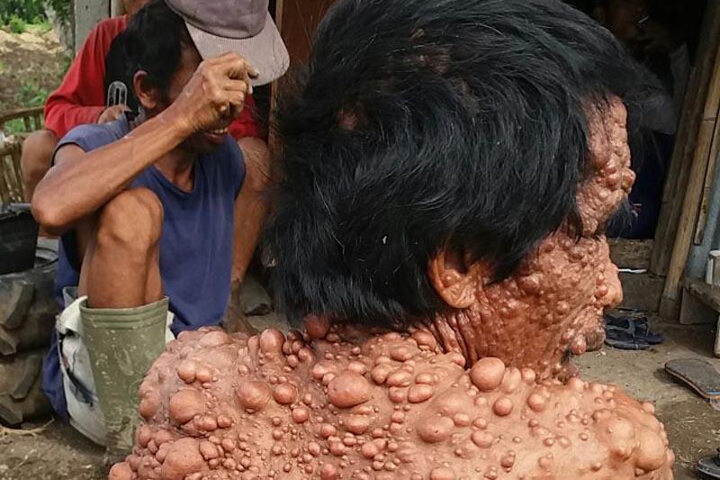 Awalnya, benjolannya itu ukurannya kecil-kecil. Tetapi seiring waktu berjalan dan dia semakin dewasa, benjolan-benjolan itu semakin membesar dan bertambah banyak. Tuntun memperlihatkan, benjolannya itu ada dari kepalanya, wajah, leher, tangan, badan hingga ke kakinya.