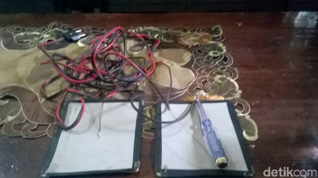 Alat setrum yang dipakai oleh Tjipto untuk menyetrum siswa dirakitnya sendiri. Para siswa disterum usai melaksanakan salat Dhuha sebelum ujian nasional dimulai.