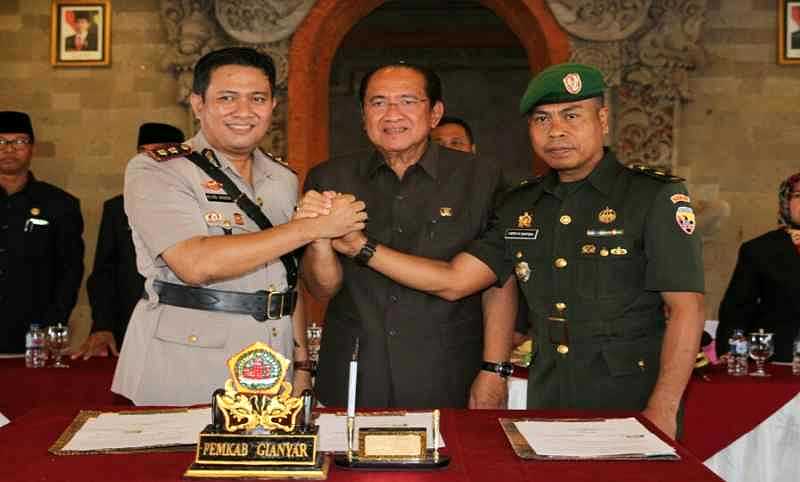 GIANYAR, BALIPOST.com – Usai penandatangan nota kesepahaman di tingkat pusat, antara Kapolri beserta Mendagri dan Menteri Desa, Pembangunan Daerah Tertinggal dan Transmigrasi RI pada 20 Oktober lalu. Polres Gianyar menindaklanjuti hal serupa dengan menggandeng Pemkab Gianyar dan Kodim 1616 Gianyar dalam upaya pencegahan, pengawasan dan penanganan permasalahan dana desa di Balai Budaya Gianyar, Senin (30/10).